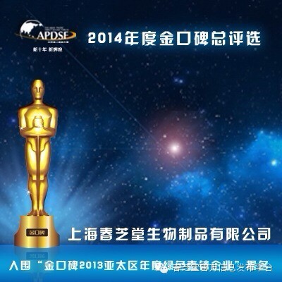 2014年,金口碑评选组组委会鉴于上海春芝堂生物制品有限公司作为保健行业唯一一家,切实改善中国以家庭为单元的社会大众的健康状况,大力弘扬中华民族优秀中医药养生文化,而汇聚众多重量级权威专家,研发出宝青春、宝心脑、宝筋骨三大系列中医养生精粹产品,成为了“2010上海世博会”展示千年中医药文化发展的“重要窗口”,珍藏并展示其“中华三宝”。经组委会严格审核,上海春芝堂生物制品有限公司入围“金口碑2013亚太区年度绿色直销企业”的提名。