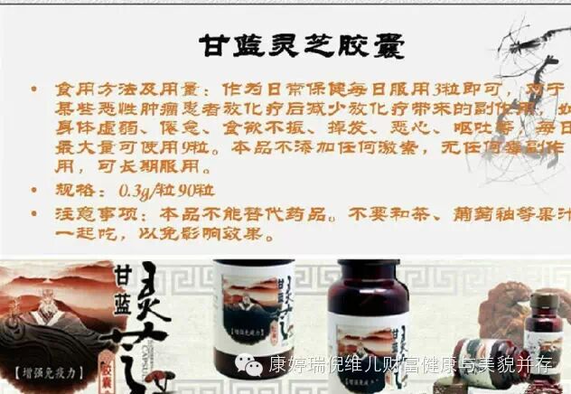 甘蓝灵芝胶囊是一款经国家食品药品监督管理局批准的带有蓝帽标示的保健食品。康婷公司保健食品秉承中华民族传统中医养生之道,采用药食同源的理论,食疗养生相结合,更贴近自然,安全更健康!