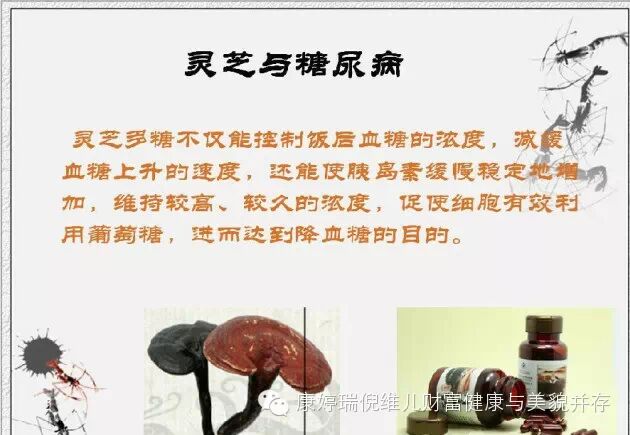 能控制饭后血糖的浓度,减缓上升的速度,还能使胰岛素缓慢稳定地增加,维持较高、较久的浓度,促使细胞有效利用葡萄糖,进而达到降血糖的目的。灵芝成分中灵芝多糖是降血糖的主要功臣,它具有提高血液中胰岛素浓度的作用,它不仅能稳定糖尿病患者的血糖,还可增强降血糖药的降血糖作用。由于灵芝还可调节血脂,降低全血黏度和血浆黏度,因此在降血糖的同时,有可以延缓糖尿病血管病变的发生。