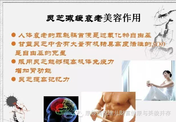 灵芝所含的多糖、多肽等有明显的延缓衰老功效。