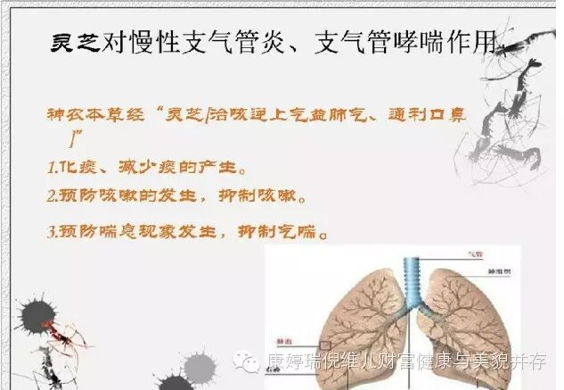 灵芝能给呼吸系统强有力的保护,可以化痰、减少痰的产生,预防咳嗽的发生, 抑制气喘。