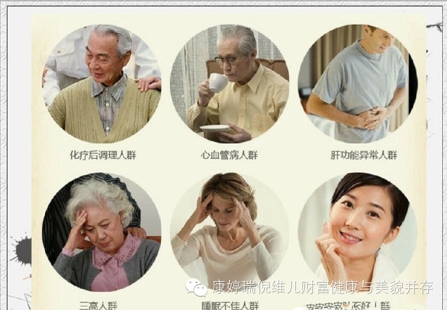 服用者普遍反应全身肌肤光滑、细腻、富有弹性。粗燥、干裂、骚痒现象消失,皱纹减少,色斑淡化,暗沉消失,睡眠改善,夜梦心悸现象消失;身体抵抗力、免疫力增强;肠胃功能改善。骨密度增加,类风湿关节炎症状明显减轻,老年性腰腿疼消失;血压平稳,血脂、血粘度、血胆固醇含量降低;女性妇科炎症症状减轻,精力增加,心情舒畅,记忆力也明显提高等等。