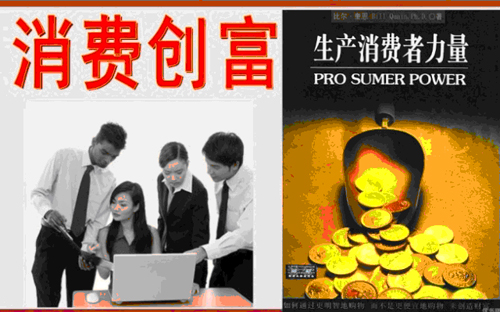 消费商的概念在中国才刚刚推出,在国外有一个相似的概念,翻译到中国叫“生产消费者”,既是生产者又是消费者。
