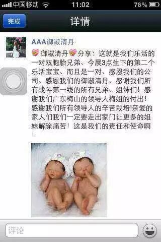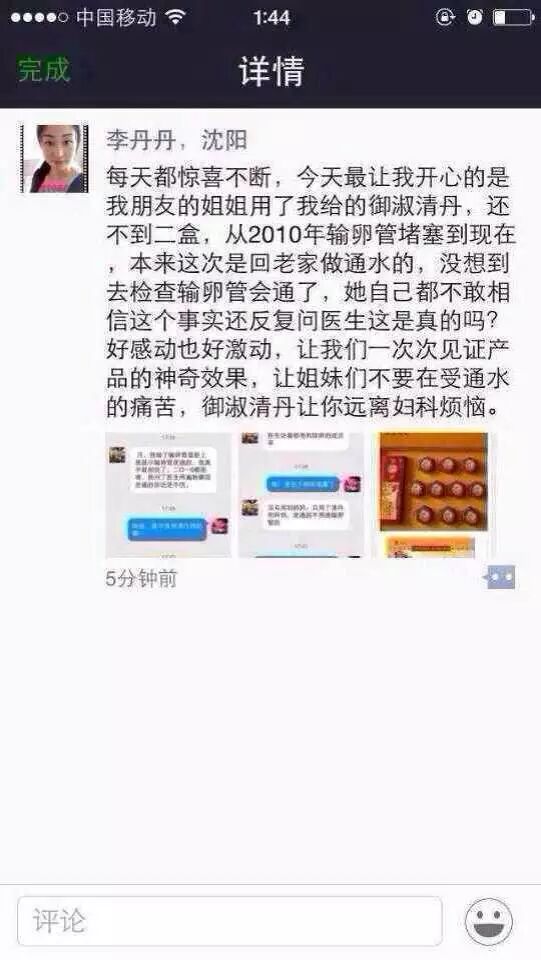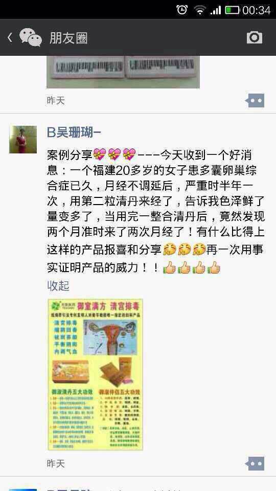 分享恭喜我的美女护士同学怀了乐活宝宝.多囊卵巢·抽血性激素中催乳素高.医生说怀孕困难,只因为简单相信御淑清丹.用了伴侣六支,一盒御淑清丹就怀BB了.能说产品不好吗?价钱贵吗?我们的产品就是送给有缘有福气的姐妹的.