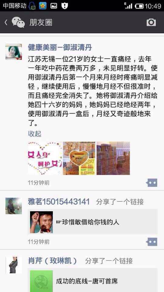2.伙伴的分享~尊敬的乐活的领导个位伙伴大家好。我是从去年8月份就开始用上御淑清丹的,现今以用了6盒,现整个人发生了巨大的变化,不管是在外貌上还是身体健康上,都收获很大。我在用产品之前做了全身体检,得知我有5种妇科疾病。子宫肌瘤5个,宫颈糜烂,宫颈息肉,子宫脱垂2度,盆腔炎。当我用了5粒时就摸不到宫颈息肉了,用了一盒后我的子宫脱垂就好了,用了两盒半检查我的原先的5个肌瘤就只剩一个在上面的了。在外貌上我也发生了很大的变化整个人瘦了很多,精神了很多,脸上的斑几乎都不见了。去年还挺个大肚子像个孕妇,上车都经常有人给让坐,现在一点肚子都没了。不但治好了妇科病,以前的种种毛病全好了,腿也不肿了,腰也不痛了,也不总迷糊了,胃也好了,就连眼睛的度数也下降了。说多了你们可能不信了,乐活的御淑清丹真的是很神奇,我说的都是在我身上发生的真实事实,不信你也试试,但你一但用上就要不管出现什么反应都要坚持使用。用到时用到量谁用谁变样,我的今天就是你们的明天。伙伴们相信乐活的御淑清丹吧!你一定会因为你的这一正确的选择而获得健康的