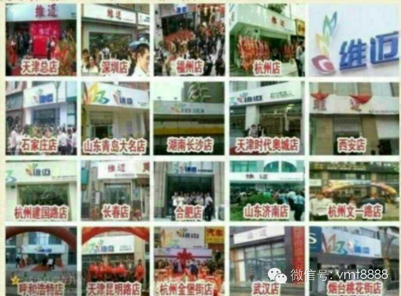 维迈2012年2月份在中国天津开出了全国首家店铺,载止到今天(2013年10月26日)开国已经开出80家店铺,而且每月新开店数量5-10家的速度在爆发。