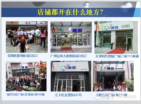 维迈的连锁店主要分布在人流量大的地方: