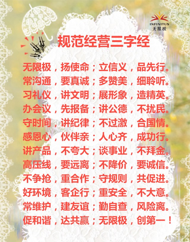 2、内容:无限极《规范经营三字经》内容(可节选,完整尤佳)