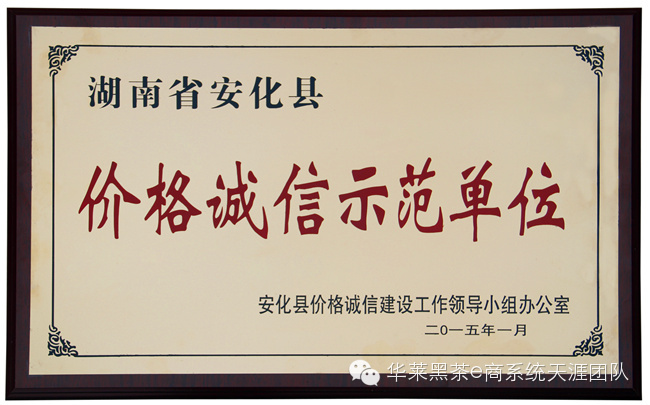 此次公司被评为“价格诚信示范单位”称号,是对公司近年来不断加强价格诚信建设,努力营造诚实、守信、合法经营的市场环境,推动诚信益阳建设作出贡献的充分肯定,公司也将以此为动力,继续秉承“要做就做最好的黑茶”的企业宗旨,继续坚定不移地为广大消费者提供优质可靠的安化黑茶产品。