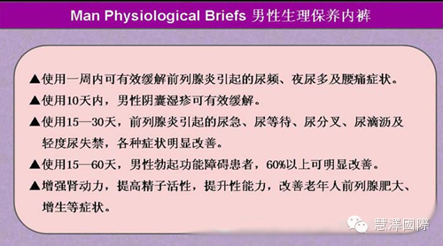 B:效果快慢存在个体差异。男性功能内裤穿着第一周。强肾功能比较明显。原来有尿频、尿急、夜尿多、肾虚引起的腰痛现象。均有不同程度的改善。穿着半个月至一个月。男性的前列腺问题有明显改善。男性功能也有不同程度地提升。穿着三个月。前列腺症状基本消失。