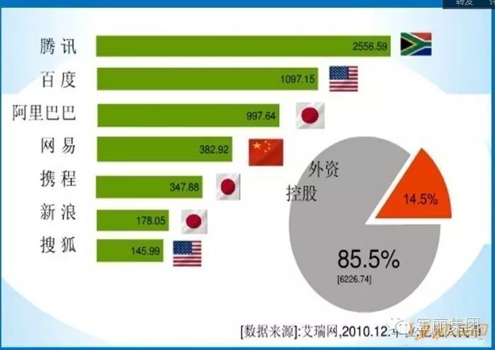根据“中国互联网外资控制调查报告”显示,中国互联网企业100强中,竟然被外资控股了78家!很明显,勤劳的中国网民每天都在为外国企业无偿甚至付费打工。