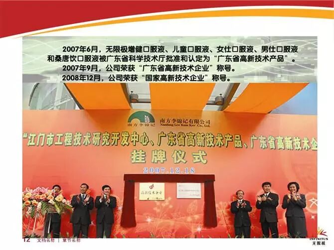 ◆2012年,获颁“广东省保健食品行业领军品牌”荣誉称号。