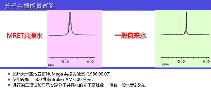 1. 日本电子研究员松下和弘及其同伴以(核磁NMR)进行测试,发现水分子集团大小不同时会发出不同的信号,于是进一步将其数值化(单位为赫兹)。当数值越小时,则分子集团小。