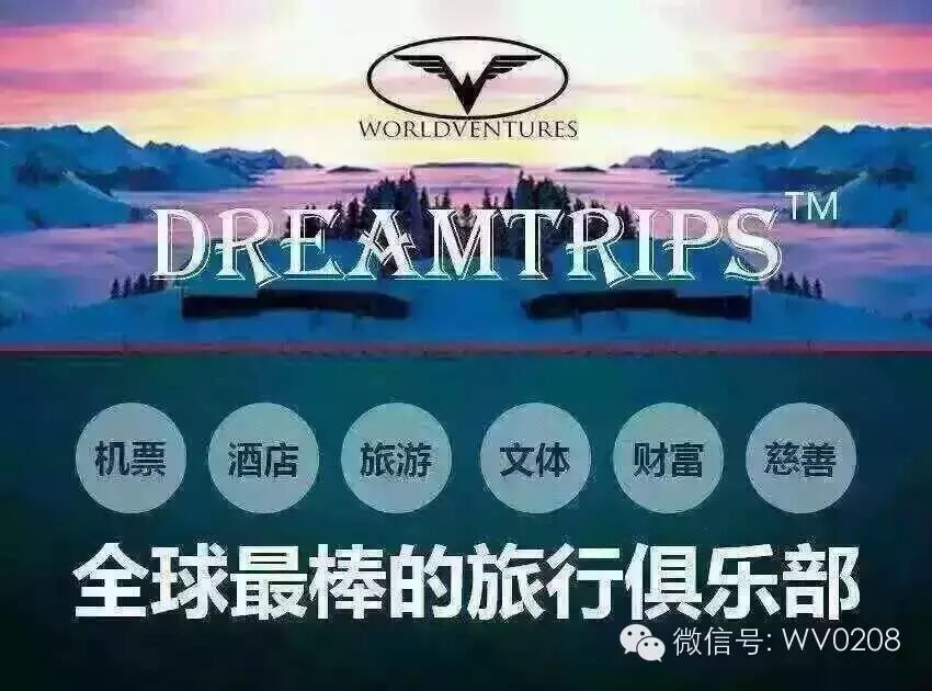 喜欢旅游+赚钱的朋友,可以加入我们的WorldVentures世界环球旅游!成为WV梦幻之旅会员不但可以享受全球最低价旅游,还可以免费旅游及代理全球以下所有旅游产品包括:机票,酒店,豪华邮轮团,度假屋,租车、旅游路线套餐等旅游配套服务产品。
