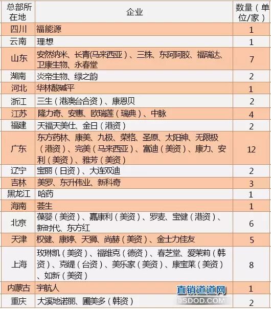 从全国直销企业分布特点来看,主要集中在华南、华北和华东三个地区,其中华南的广东、福建和海南,华北的北京、天津,以及华东的山东、江苏、浙江和上海等分布较为密集;