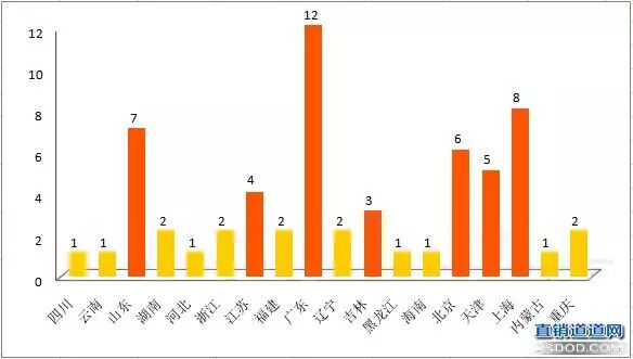 1、各省份直销企业数量排名:广东第一,上海第二,山东第三