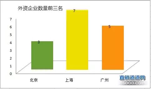 上海有8家直销企业,名列第二名,8家直销企业当中,外资企业占7家,其中以美资企业为最,仅有春芝堂为本土企业;