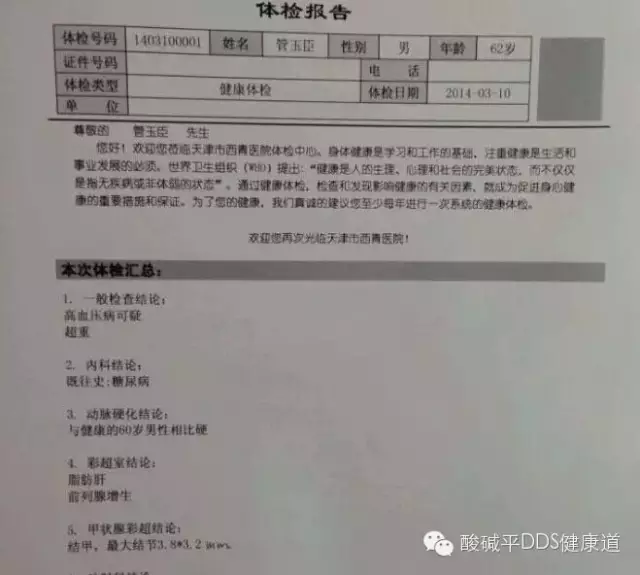 就在准备做手术之际,偶然听朋友说,有种神奇的DDS技术对这类疾病调理效果非常显著,它的功能主要是平酸、通经络,促进气血循环和新陈代谢,以达到消除疾患目的。我知道经络是人体气血运行的通道,只要是手术,就会伤及经络,伤及气血。然而经络一旦受到伤害,是后期怎样弥补都无法修复的。如果DDS 技术能既不伤害身体,又能解除病痛的折磨,何乐而不为呢? 理疗师在了解我的情况后,通过医院诊断数据,又细致地咨询了我的身体反应,制定了一套缜密的调理方案。在经过14次的调理后,奇迹出现了,我再去天津西青医院检查时,血糖由14.2降到了7.6;甲状腺结节由3.8*3.2缩减到0.76*0.32。当一家人知道了这个消息,顿时沸腾了,感激、喜悦之心难以表达。 上天总是把最好的机会留给那些敢于尝试的人。相信别人一次,也就是给了自己一次机会,最后给自己带来的是福报,我们的DDS技术就是这么任性!!! 酸碱平DDS技术,是您身体健康的福音,关注我、认识我,亚健康体质从此改变!