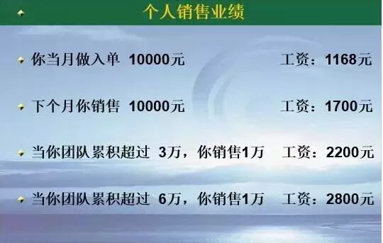 个人销售:业绩累计,同样销售1万,累计级别越高,收入越高,1168→1700→2200→2800