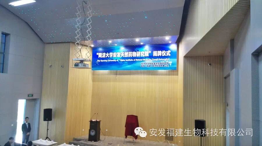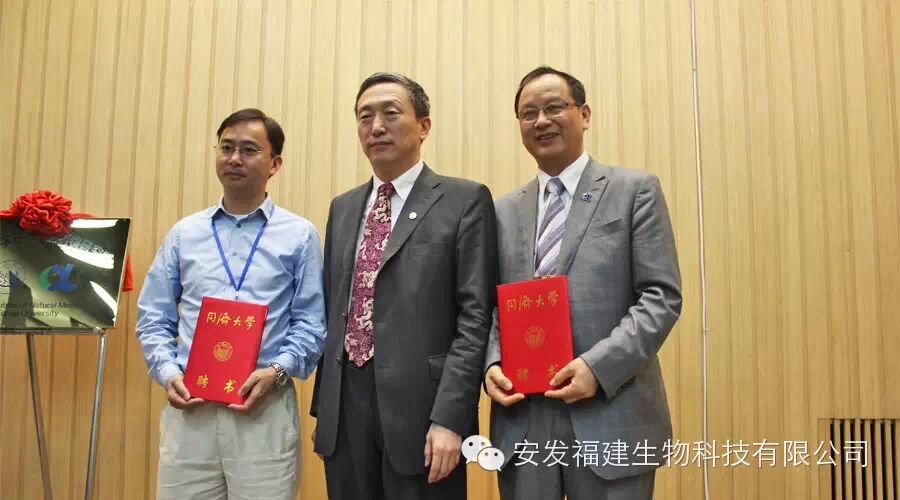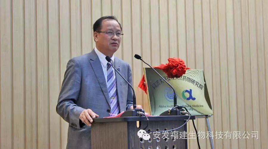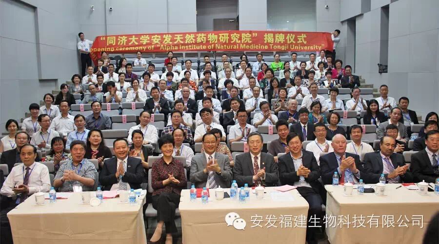 2015年5月20日,上海同济大学校园内喜气洋洋,因为今天不但是同济大学建校108周年的校庆之日,也是同济大学和安发国际控股集团共同创建的【同济大学安发天然药物研究院】揭牌的大喜之日。参加揭牌仪式的有中国科学院院士、中国细胞生物学会理事长、中药全球化联盟副主席、同济大学校长裴钢教授,同济大学校长助理、转化医学高等研究院院长孙方霖教授,同济大学副总会计师凌玮、同济大学高等研究院院长王占山等同济大学的领导,还有瑞典皇家科学院科学家、厦门大学医学院副院长齐忠权教授;中国侨联经济科技部部长陈桦,中共中央党校国际战略研究所史妍嵋教授,福建省侨联副主席陈式海,上海市科协副主席陆檩,中共吉林省延边朝鲜族自治州州委副秘书长张建,福建省宁德市副市长崔国辉,宁德市东侨开区发管委会主任陈旺玉,还有远道而来的新西兰梅西大学RIDDET学院院长Paul James Moughan教授,食品科学与技术学院院长Harjinder Singh教授等六十多位院士、教授、专家和政府领导。世界著名真菌及医学营养学家、新西兰皇家科学院生物活性研究所首席科学家、中国科协海智计划专家、安发国际控股集团董事局主席高益槐教授,新西兰中国科技经济促进会副会长、安发国际控股集团总裁高炜率安发生物科技高层领导出席了揭牌仪式。此次活动吸引了新华社、《科技日报》、《经济参考报》、新西兰中文《先驱报》、《福建侨报》、宁德电视台、《闽东日报》等多家媒体的关注和报道。