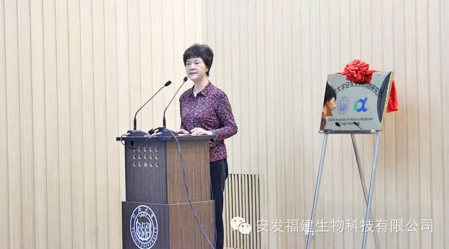 接着, 孙方霖院长代表同济大学宣布高益槐教授为【同济大学安发天然药物研究院】院长,邱安东教授为常务副院长,裴钢教授为高益槐教授和邱安东教授颁发证书。之后,高益槐教授代表【同济大学安发天然药物研究院】与项耀祖博士签订聘任协议并为项耀祖博士和邱安东教授颁发安发教授证书,项耀祖和邱安东教授是【同济大学安发天然药物研究院】两个PI制(PrincipalInvestigator)团队的负责人。紧接着,中国侨联经济科技部部长陈桦代表侨联进行致辞,她说,【同济大学安发天然药物研究院】的成立,是生物产业产学研交流中的一个创新平台,也是侨界一个具有示范性的创新平台,同济大学是一个百年老校,也是一个世界知名的名校,综合实力排在全国大学的前列,而安发国际是一个侨界知名的企业,高益槐教授在生物科学领域的深厚造诣,这都预示着同济大学和安发国际的合作必将掀起校企新型合作的新篇章,安发国际健康事业的辉煌未来指日可待。