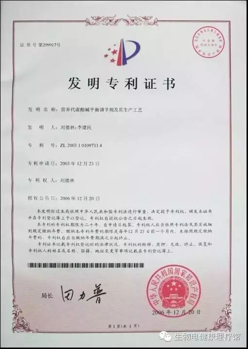 11、首先这个产品是河北华林酸碱平生物技术有限公司的一个产品,叫酸碱平生物电按摩器。在2006年获得了中国国际专利与名牌博览会金奖,“3·15”重点防伪保护品牌,还通过了欧盟CE认证——产品过关!酸碱平是华林公司生产的系列产品的商品名称,专业纠正人体酸性体质的特殊食品或者是产品。酸碱平DDS技术,只是酸碱平系列产品其中的一个产品。2015年4月华林酸碱平公司在美国拿到FDA认证并正式审批,DDS生物电在美国医疗保健器械拿到一级审批,认证编号:10049054。FDA是美国食品药品监督管理局,是国际医疗最权威的审批机构。这意味着包括美国在内的100个国家可以销售畅通无阻。我们之前拿到了欧盟CE认证,我们的产品在欧盟的27个联合国销售畅通无阻。最早几年前就已在国内拿到了国家专利技术证。国际友人也纷纷到河北公司总部来学习技术,足以可见,这是一项引领世界潮流的先进技术!在还没有全面普及推广到人人皆知的时候,我们先知先学,我们就是走在了潮流的潮头,就是抢占先机,抓住了成功!