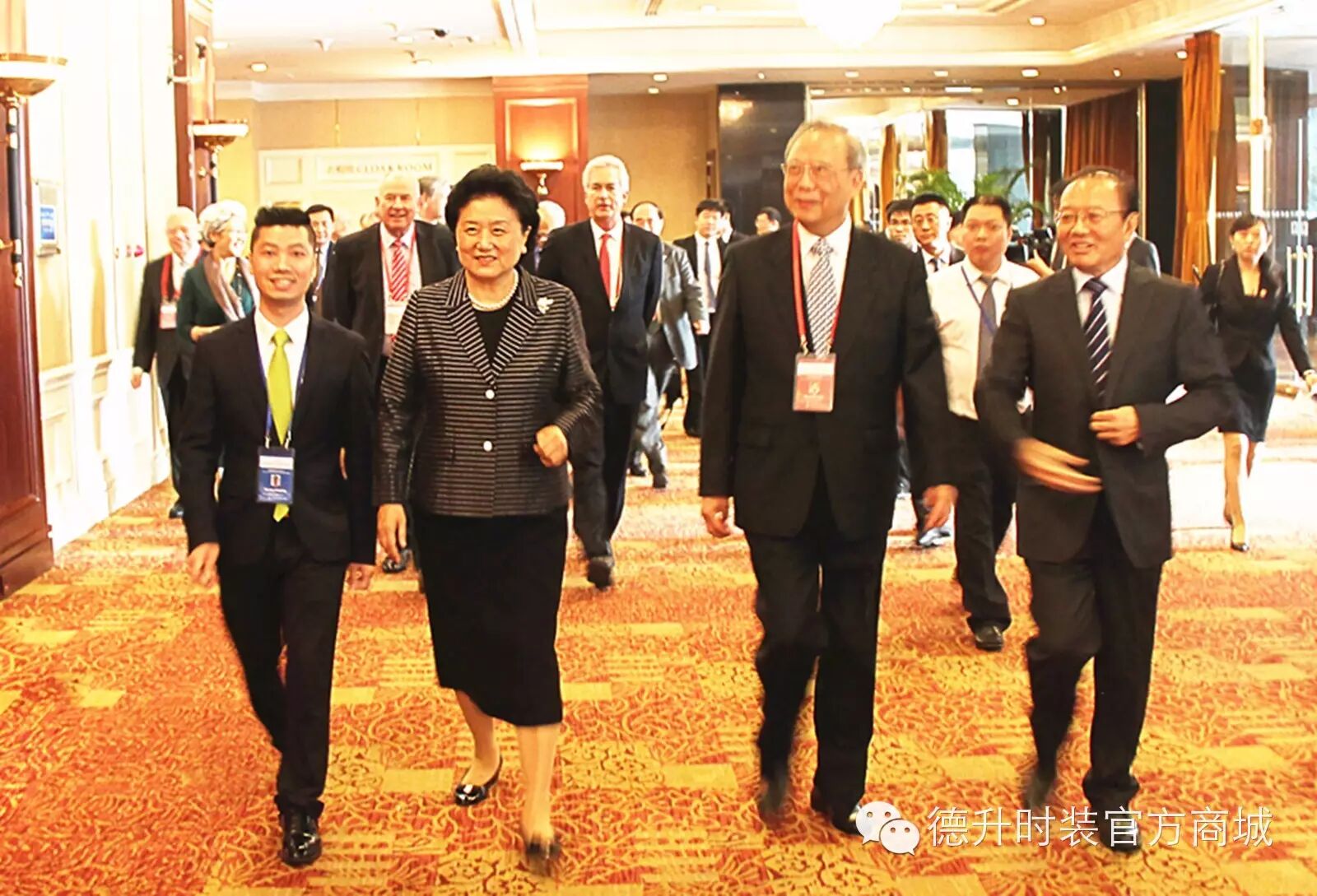 从左至右:德升集团董事长张显煌、国务院副总理刘延东、国务院前副总理曾培炎、商务部副部长魏建国