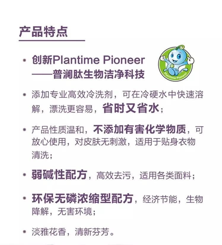 清洁力强,能在冷水中有效地清洗各类可水洗衣物