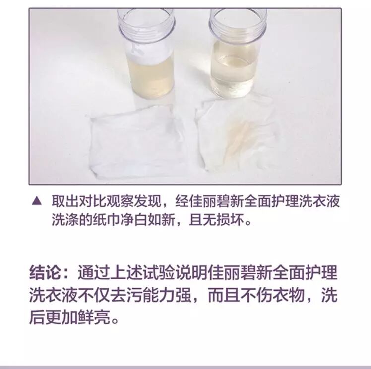 机洗(适用于可水洗衣物、不褪色衣物):每3件衣物加15毫升佳丽碧新全面护理洗衣液,最好选择浸泡程序浸泡几分钟,然后选择相应洗涤程度进行洗涤。(根据衣物多少,脏污程度,可酌情加减用量)