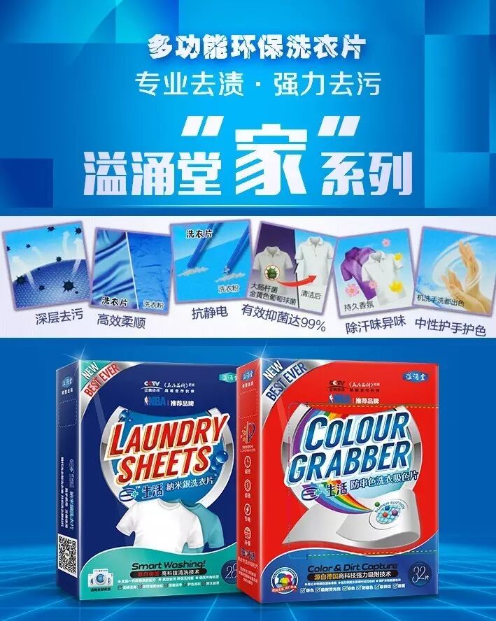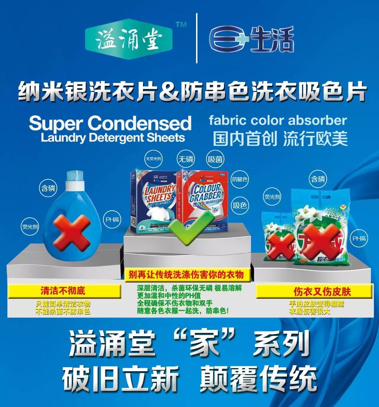 21世纪全球洗涤新方式——洗衣片的问世,成功解决了这一洗衣难题。洗衣片放入水中,3秒即溶,无任何残留物。无论是在放入待洗衣物之前还是随着待洗衣物一起放入,或在放入待洗衣物之后丢入洗衣片,皆可完全溶解。E+生活洗衣片在解决这一洗衣难题的同时增加了另一款“防串色洗衣吸色片”产品。对广大消费者来说,这样的“黄金组合”彻底颠覆以往洗涤模式,成为新时代的洗涤新标准。