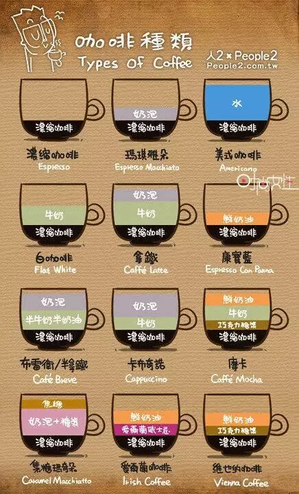 咖啡有很多种类,他们到底有什么不同呢?一图看懂咖啡的种类。