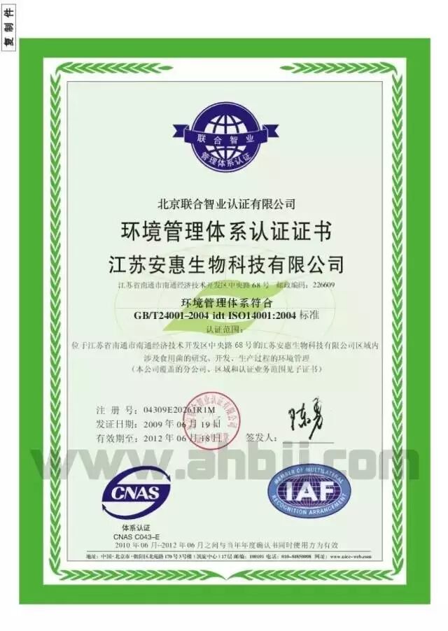 安惠公司是一家对环境负责的企业,符合低碳循环经济的运行要求,获得ISO14001环境管理体系认证,标志着安惠已建立了环境管理的自我约束机制持续完善运行,实现无污染和环境保护的承诺。