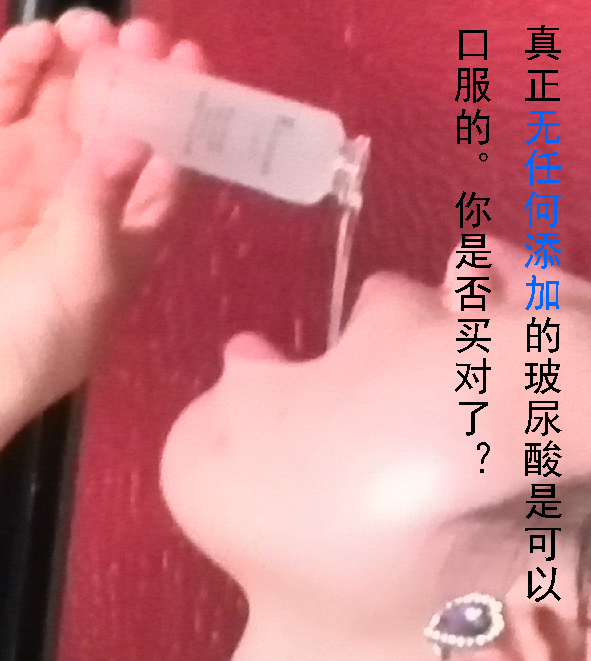 当你在看完它成份表后,如除了水和玻尿酸再无任何其它添加,你可以问销售人员,此款玻尿酸是否可以口服?