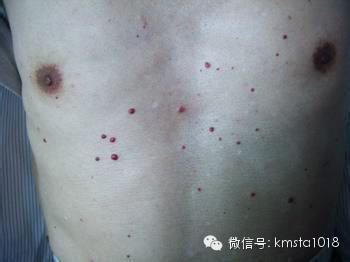 血痣基本上长在身上,手上,腿上,就像打完针的血泡,一个红点,大的像枸杞子那么大。血痣提示脂肪痰湿的积滞,容易发生脂肪肝、肝硬化、胆囊炎等疾病,对见于脂肪肝、慢性肝炎的病人,主要长在胸、腹部。血痣越大越多,肝的代谢功能越差,脂肪代谢差,容易血脂过高,胆固醇过高。