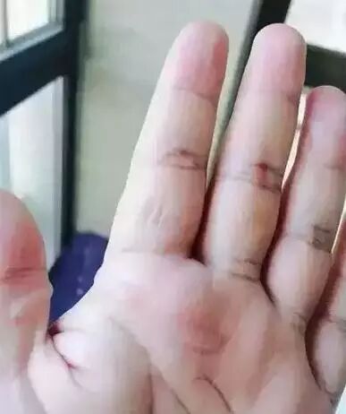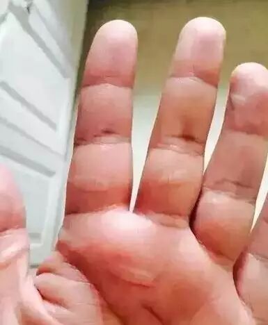 沙棘神油涂抹一天一夜。很明显,三处比较小的泡已经基本上好了。两处比较大的泡,积液也开始变黄并逐渐开始吸收。确实一点都不疼了,手部运用自如。